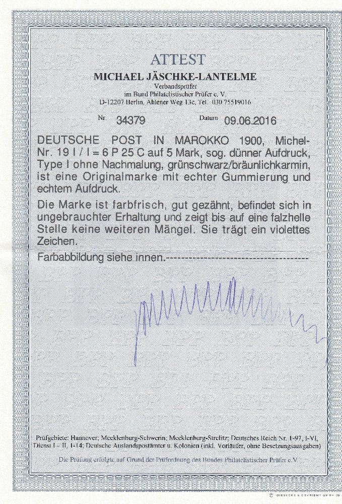 | Prüfgebiet: | Deutsche Auslandspostämter Marokko |