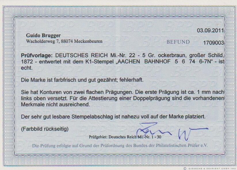 | Prüfgebiet: | Deutsches Reich 1871 - 1918 (Mi-Nr. 1 - 106) |