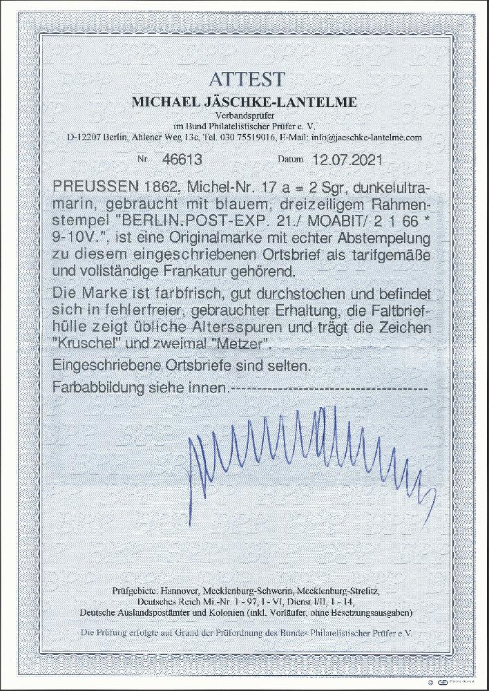 | Prüfer: | Jäschke-Lantelme, Michael (BPP (Bund Philatelistischer Prüfer)) |