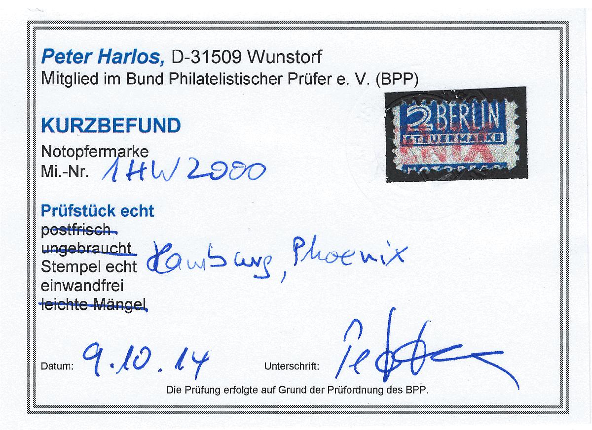 | Zusatzinformationen und Suchstichworte: | Notopfer 1 HW 2000 /K Privattrennung der Firma Phoenix |