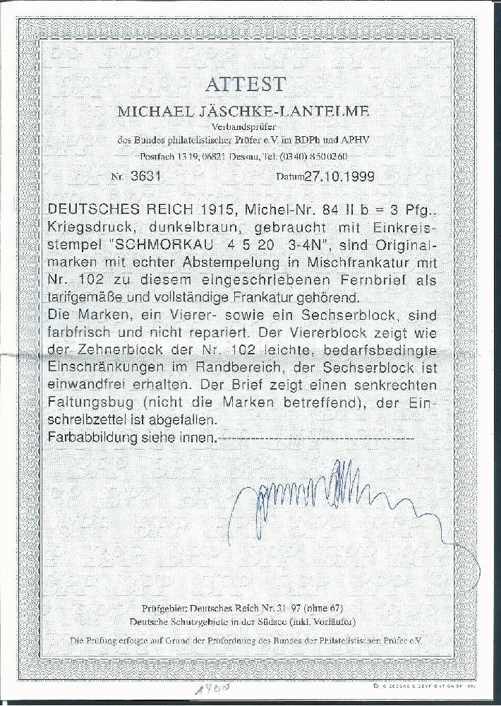| Prüfer: | Jäschke-Lantelme, Michael (BPP (Bund Philatelistischer Prüfer)) |