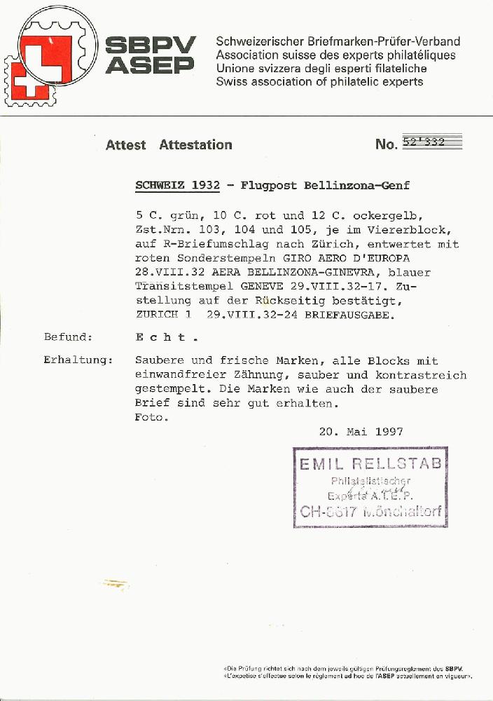 | Prüfer: | Rellstab, Emil (AIEP (Association internationale des experts en philatélie)) |