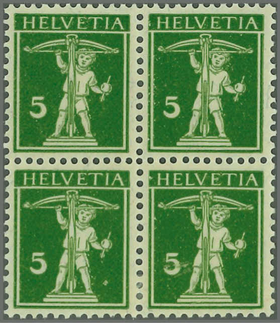 | Zusatzinformationen und Suchstichworte: | Rapp Auktion 2022 Auktionstermin: 2. - 7. Mai 2022 Los 269 Schweiz Freimarken nach 1907 5 Rp. grün, Druck auf Gummiseite, postfrischer Viererblock, kleiner Falzrest im unteren Paar auf der ungummierten für den Druck bestimmte Seite. Laut Zumstein wurde 1915 versehentlich ein 100er-Bogen an den Verkauf geliefert. Atteste Renggli und Eichele Zuschlag 560,00 CHF |