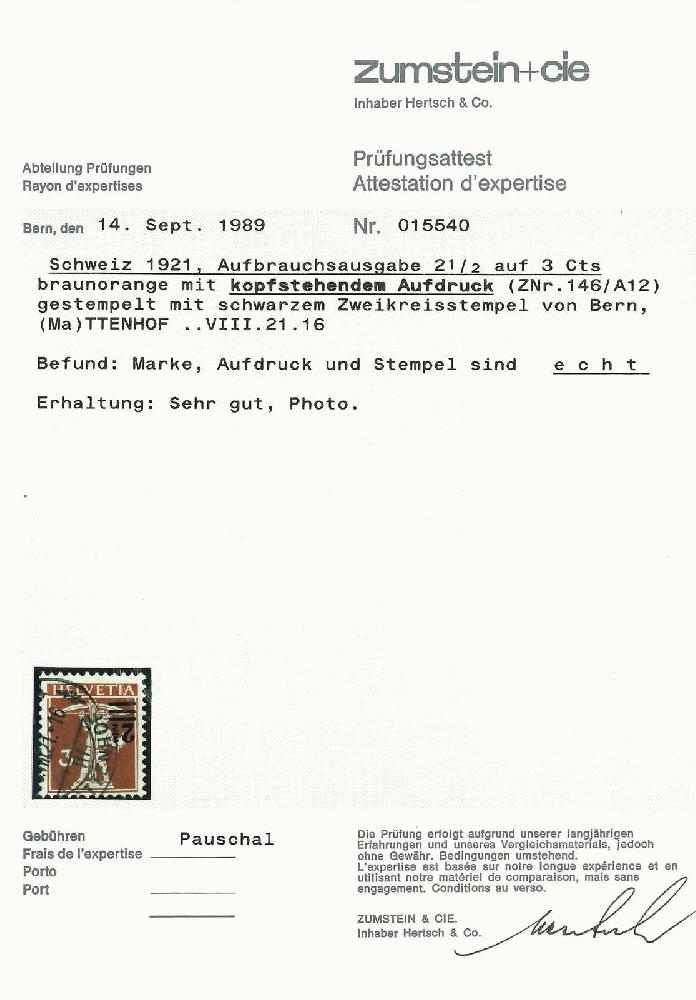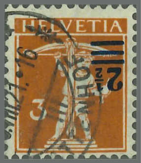 | Zusatzinformationen und Suchstichworte: | Rapp Auktion 2022 Auktionstermin: 2. - 7. Mai 2022 Los 271 Schweiz Freimarken nach 1907 2 1/2 auf 3 Rp. braunorange, Aufdruck kopfstehend, einwandfrei und sauber gestempelt. Attest Hertsch. Zuschlag 360,00 CHF |