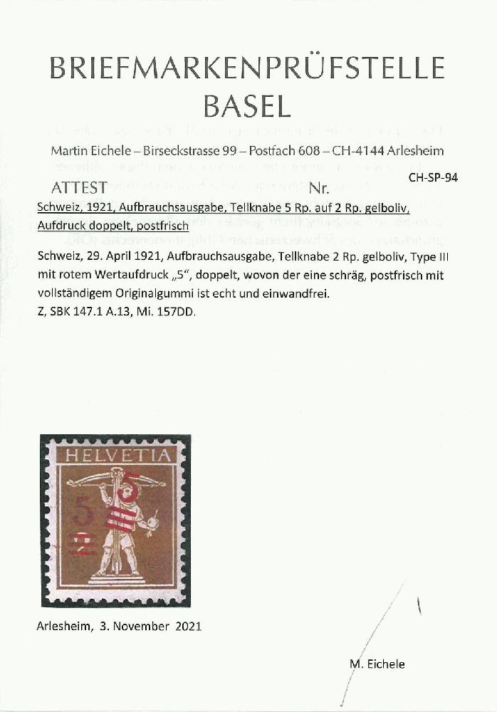 | Prüfer: | Eichele, Martin (BPB (Briefmarkenprüfstelle Basel)) |