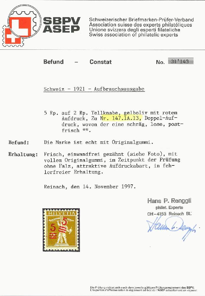 | KatalogNr: | Zumstein 147.1A.13 |