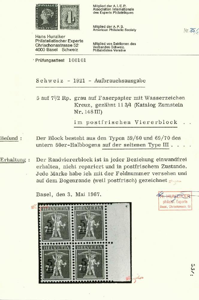| Prüfer: | Hunziker, Hans (AIEP (Association internationale des experts en philatélie)) |