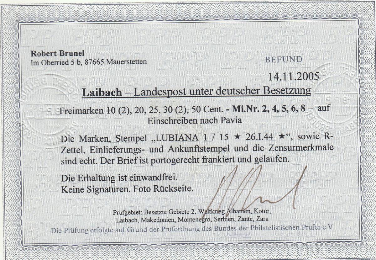 | Prüfgebiet: | Deutsche Besetzung WK 2 Laibach |