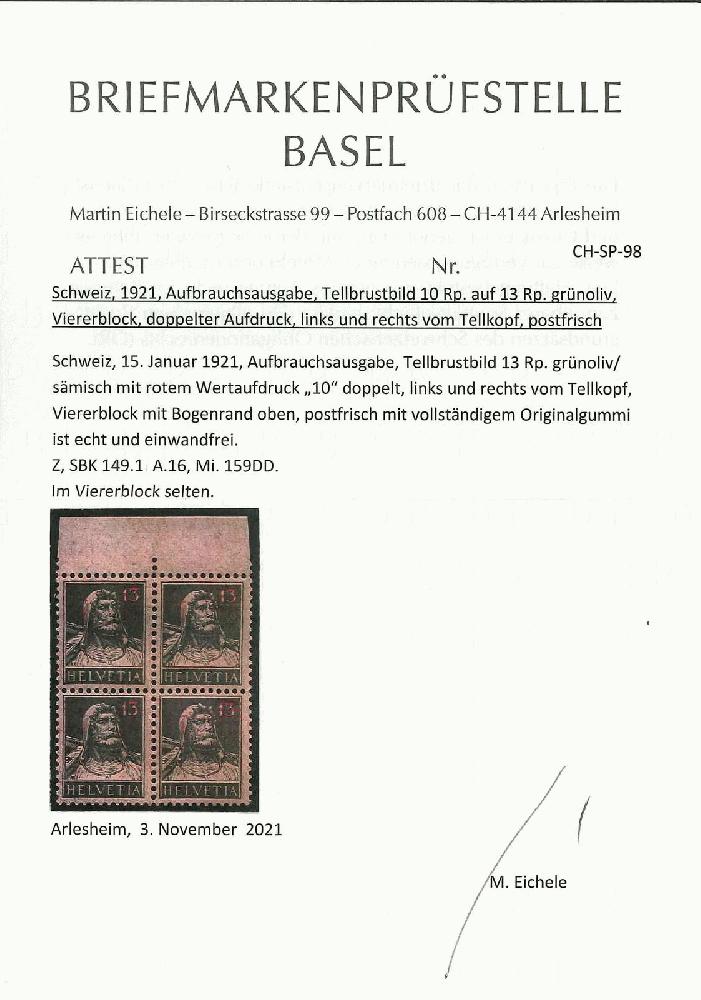 | Prüfer: | Eichele, Martin (BPB (Briefmarkenprüfstelle Basel)) |