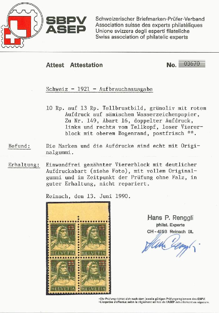 | Prüfer: | Renggli, Hans P. (SBPV / ASEP (Schweizerischer Briefmarken-Prüfer-Verband)) |