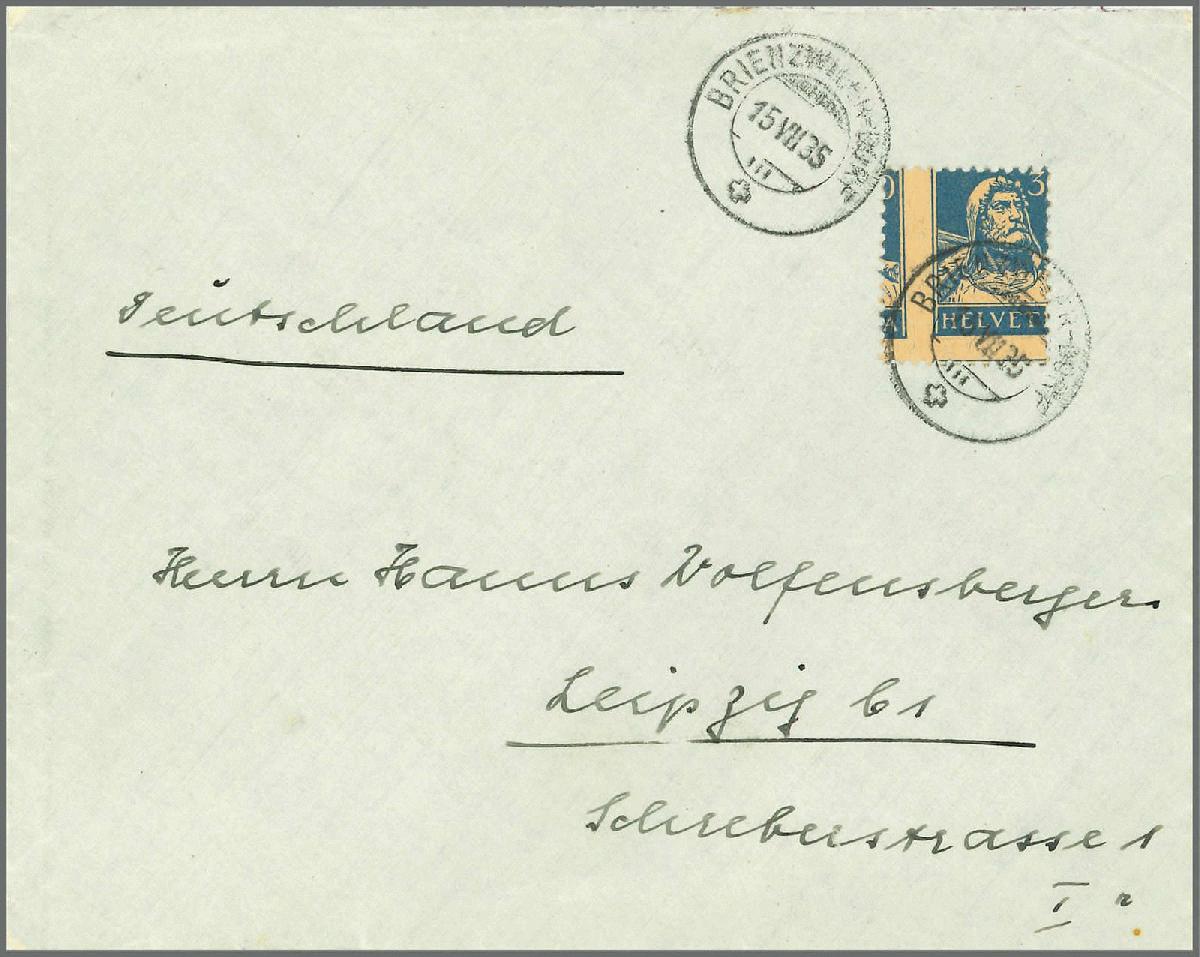 | Zusatzinformationen und Suchstichworte: | Rapp Auktion 2022 Auktionstermin: 2. - 7. Mai 2022 Los 289 Schweiz Freimarken nach 1907 30 Rp. blau, markante Verzähnung nach links, portogerecht auf sauberem und vollständigen Umschlag von Brienzwiler nach Leipzig in sehr guter Erhaltung. Auf Brief eine kaum zu findende Abart! Attest Eichele. Zuschlag 650,00 CHF |