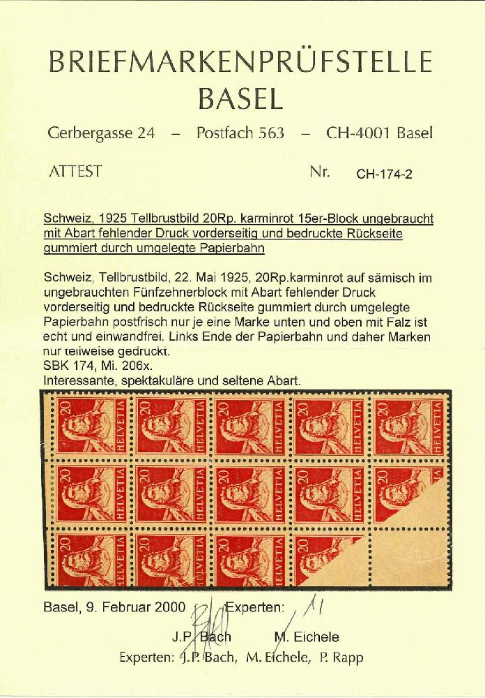 | Prüfer: | Bach, Jean-Paul, und Eichele, Martin (BPB (Briefmarkenprüfstelle Basel)) |