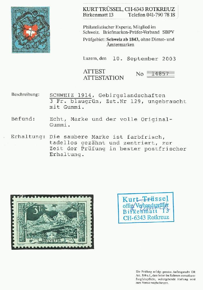 | Prüfer: | Trüssel, Kurt (SBPV / ASEP (Schweizerischer Briefmarken-Prüfer-Verband)) |