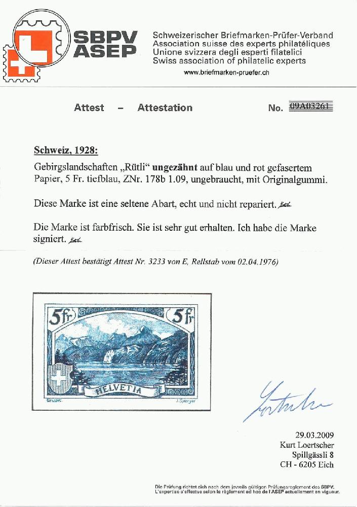| Prüfer: | Loertscher, Kurt (SBPV / ASEP (Schweizerischer Briefmarken-Prüfer-Verband)) |