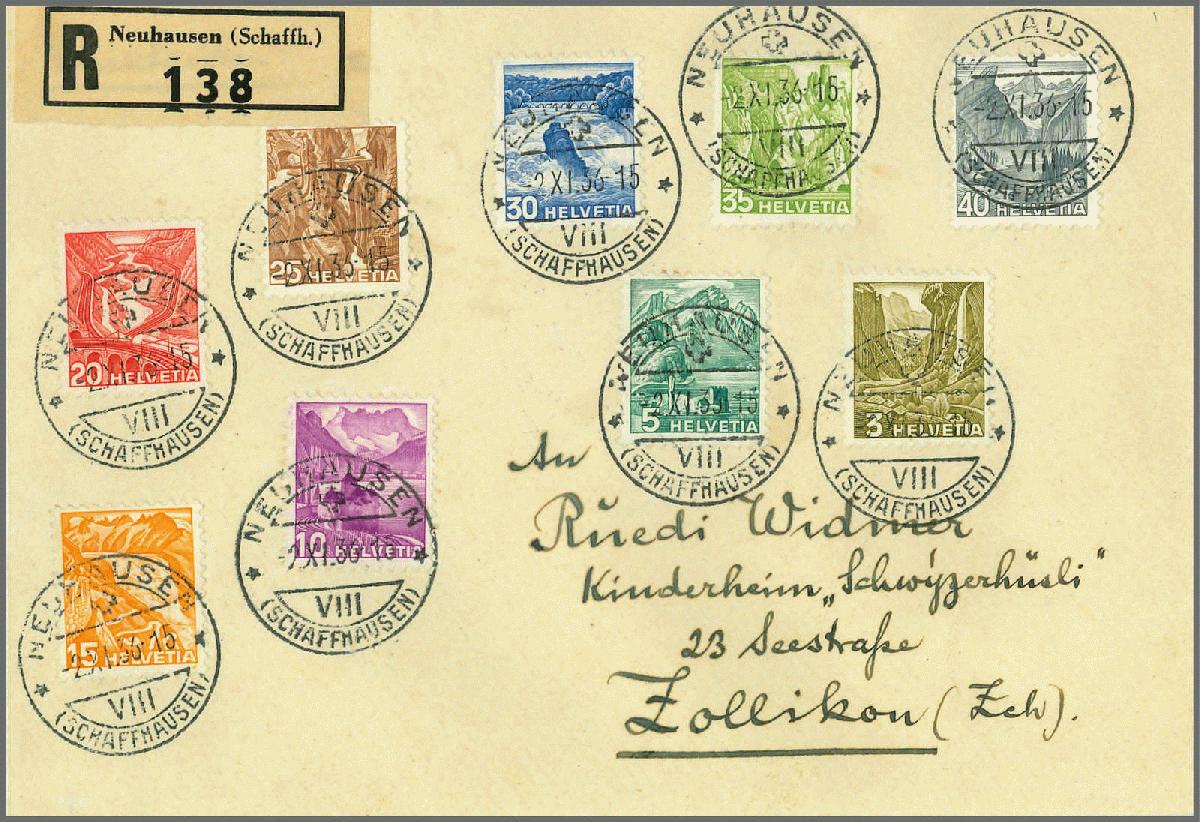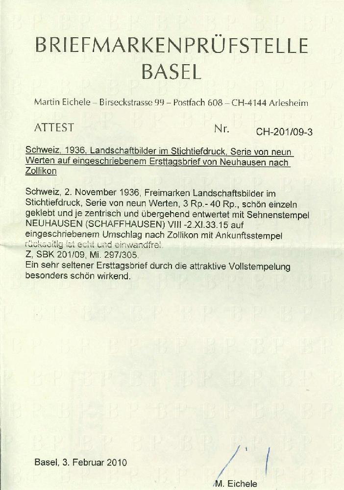 | Zusatzinformationen und Suchstichworte: | Rapp Auktion 2022 Auktionstermin: 2. - 7. Mai 2022 Los 326 Schweiz Freimarken nach 1907 Landschaften 1936, der kpl. Satz auf schönem, eingeschriebenem Ersttags-Brief von Neuhausen nach Zollikon. Beste Erhaltung. Attest Eichele. Zuschlag 1.100,00 CHF |