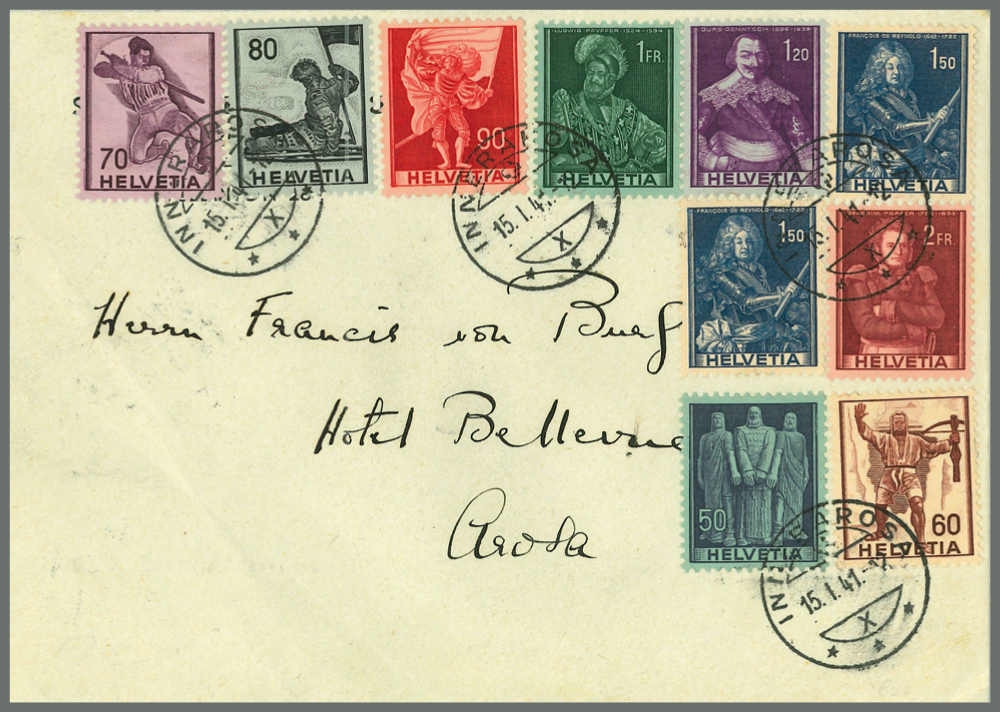 | Zusatzinformationen und Suchstichworte: | Rapp Auktion 2022 Auktionstermin: 2. - 7. Mai 2022 Los 349 Schweiz Freimarken nach 1907 Der kpl. Satz (Marke zu 1.50 doppelt) auf Ersttags-Brief, lokal aufgegeben in Arosa. Der Brief ist links diagonal bügig, ohne die Marken zu beeinträchtigen. Laut Attest Marchand gute Erhaltung. Zuschlag 550,00 CHF |