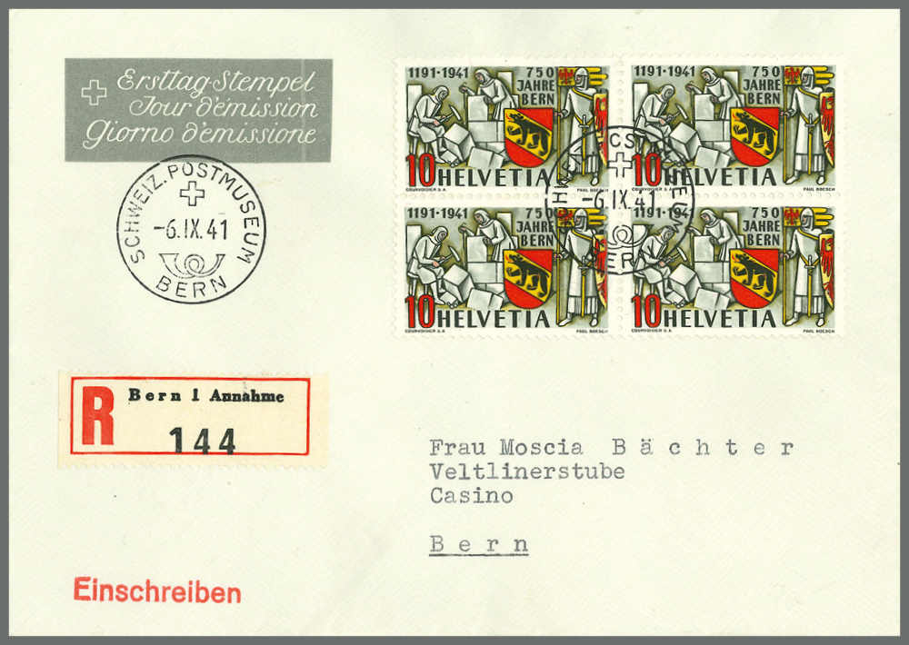 | Zusatzinformationen und Suchstichworte: | Rapp Auktion 2022 Auktionstermin: 2. - 7. Mai 2022 Los 354 Schweiz Freimarken nach 1907 10 Rp. mehrfarbig, Viererblöcke in beiden Farbvarianten jeweils auf attraktiven, eingeschriebenen Ersttags-Briefen. Ein perfektes Duo in bester Erhaltung. Attest Eichele. Zuschlag 1.000,00 CHF |
