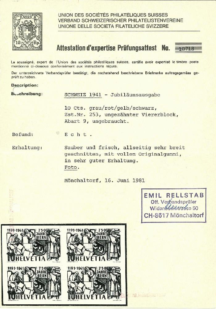 | Prüfer: | Rellstab, Emil (SBPV / ASEP (Schweizerischer Briefmarken-Prüfer-Verband)) |