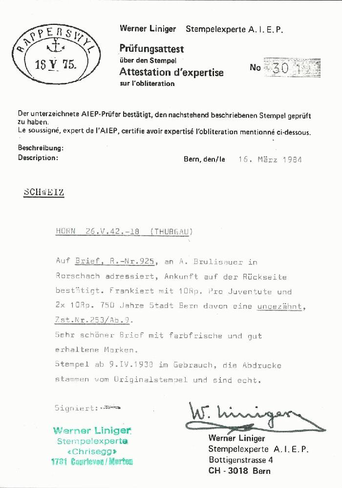 | Prüfer: | Liniger, Werner (AIEP (Association internationale des experts en philatélie)) |