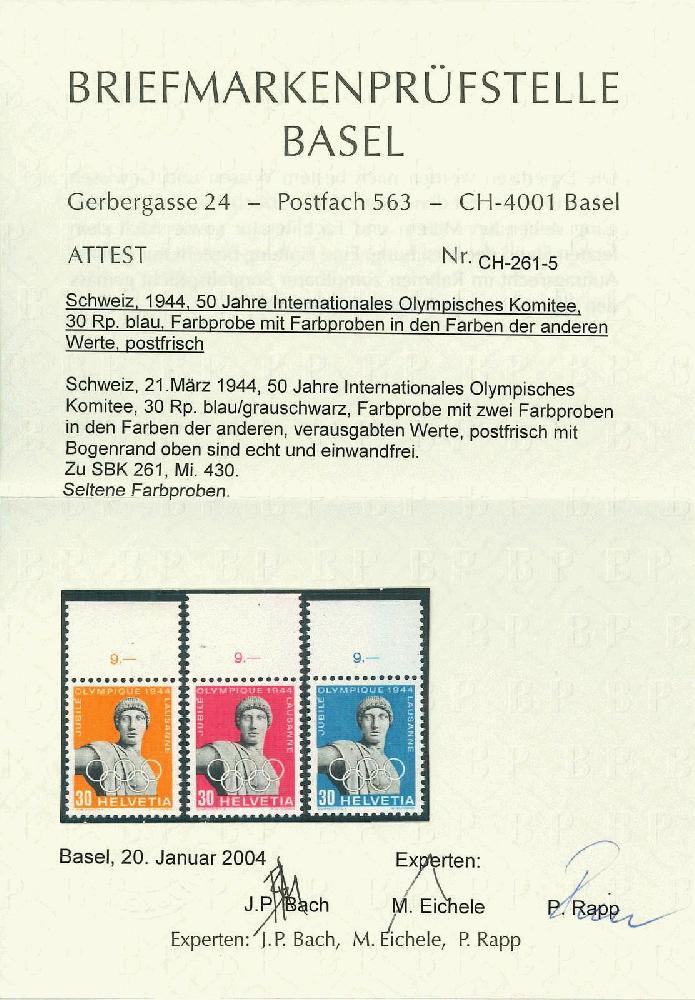 | Prüfer: | Bach, Jean-Paul, Eichele Martin und, Rapp, Peter (BPB (Briefmarkenprüfstelle Basel)) |