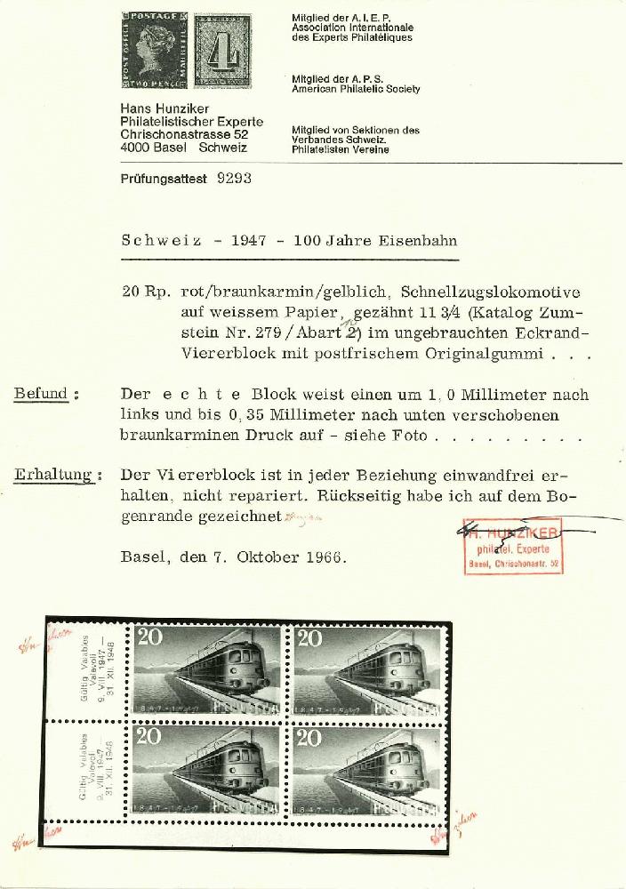 | Prüfer: | Hunziker, Hans (AIEP (Association internationale des experts en philatélie)) |