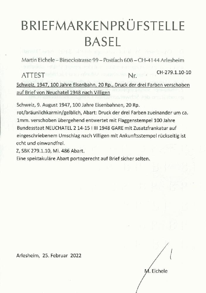 | Zusatzinformationen und Suchstichworte: | Rapp Auktion 2022 Auktionstermin: 2. - 7. Mai 2022 Los 370 Schweiz Freimarken nach 1907 20 Rp. rot, Druck der drei Farben zueinander um ca. 1 mm verschoben, mit Beifrankatur, portogerecht auf Einschreibe-Brief von Neuchatel nach Villigen bei Brugg. Attest Eichele. Zuschlag 240,00 CHF |