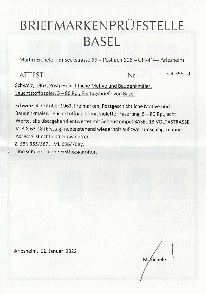 | Zusatzinformationen und Suchstichworte: | Rapp Auktion 2022 Auktionstermin: 2. - 7. Mai 2022 Los 383 Schweiz Freimarken nach 1907 5 Rp. bis 80 Rp. auf Leuchtstoff-Papier, der kpl. Satz auf attraktiven Ersttags-Briefen ohne Adressen. Attest Eichele. Zuschlag 340,00 CHF |