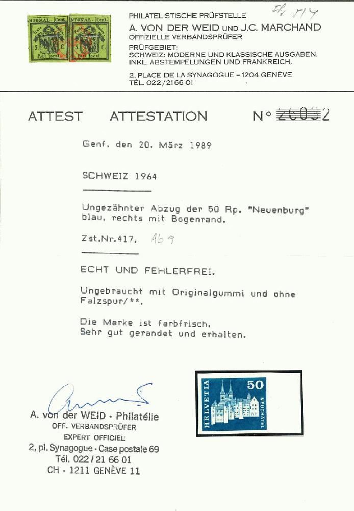 | Prüfer: | von der Weid, Alain (SBPV / ASEP (Schweizerischer Briefmarken-Prüfer-Verband)) |