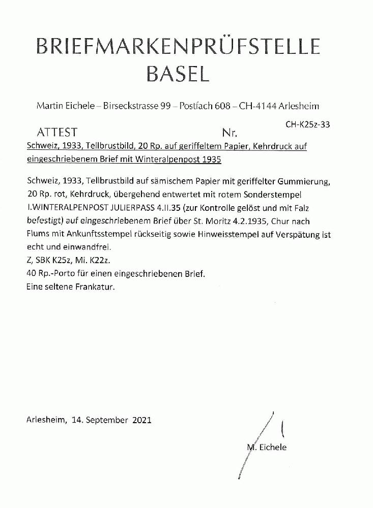| Prüfer: | Eichele, Martin (BPB (Briefmarkenprüfstelle Basel)) |