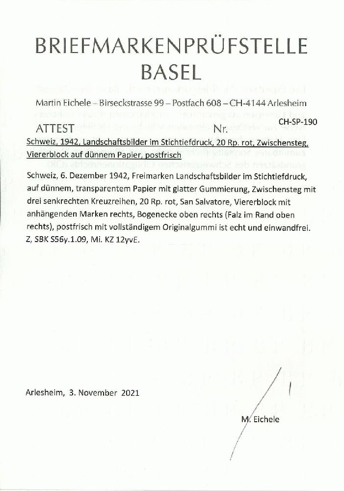 | Prüfer: | Eichele, Martin (BPB (Briefmarkenprüfstelle Basel)) |