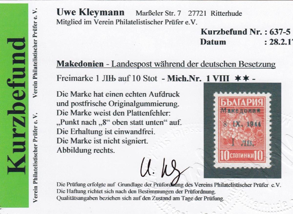 | Prüfer: | Kleymann, Uwe (VPh (Verein Philatelistischer Prüfer)) |