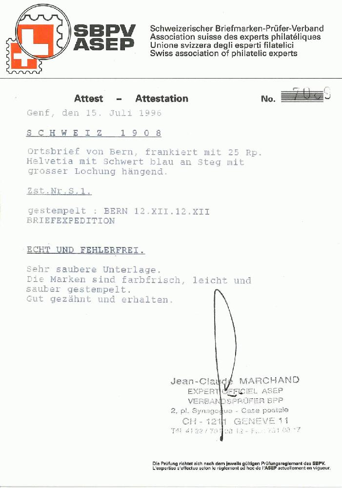 | Prüfer: | Marchand, Jean-Claude (SBPV / ASEP (Schweizerischer Briefmarken-Prüfer-Verband)) |