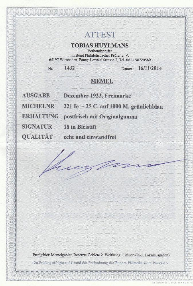 | Prüfer: | Huylmans, Tobias (BPP (Bund Philatelistischer Prüfer)) |