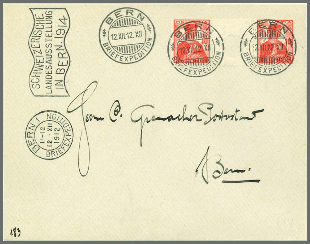 | Zusatzinformationen und Suchstichworte: | Rapp Auktion 2022 Auktionstermin: 2. - 7. Mai 2022 Los 426 Schweiz K/Z/S, Sammlungen, Lots und Posten 10 Rp. rot, Zwischensteg auf sehr schönem Brief von BERN 12.XII.12.XII und zusätzlichem Sonderstempel der Landesausstellung. Atteste Liniger und Marchand. Zuschlag 200,00 CHF |