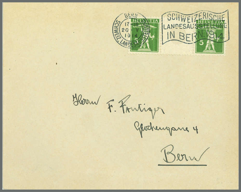 | Zusatzinformationen und Suchstichworte: | Rapp Auktion 2022 Auktionstermin: 2. - 7. Mai 2022 Los 428 Schweiz K/Z/S, Sammlungen, Lots und Posten 5 Rp. grün, Type II, Zwischensteg auf Brief von Bern mit Sonderstempel der Landesausstellung. Sehr gute und saubere Erhaltung. Attest Marchand. Zuschlag 420,00 CHF |
