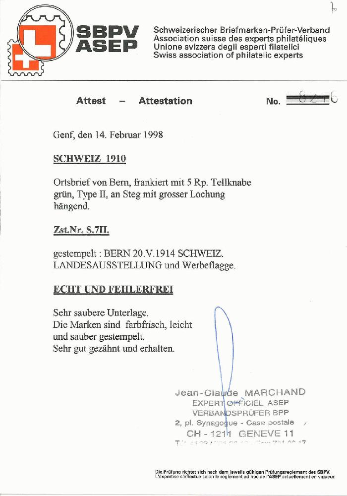 | Prüfer: | Marchand, Jean-Claude (SBPV / ASEP (Schweizerischer Briefmarken-Prüfer-Verband)) |