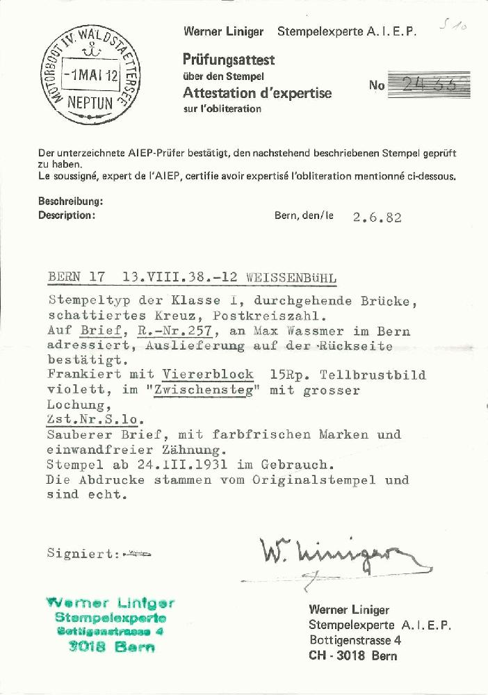 | Prüfer: | Liniger, Werner (AIEP (Association internationale des experts en philatélie)) |