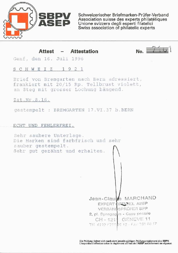 | KatalogNr: | Zumstein S 16 |