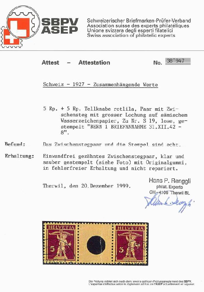 | Prüfer: | Renggli, Hans P. (SBPV / ASEP (Schweizerischer Briefmarken-Prüfer-Verband)) |