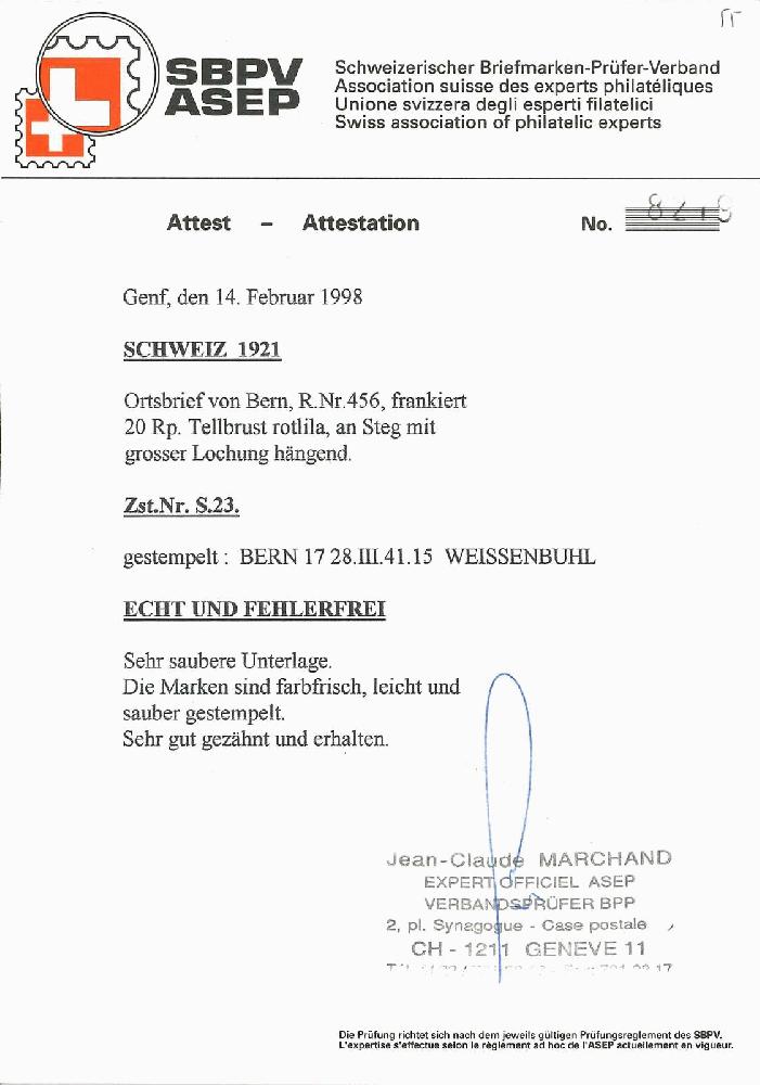 | Prüfer: | Marchand, Jean-Claude (SBPV / ASEP (Schweizerischer Briefmarken-Prüfer-Verband)) |