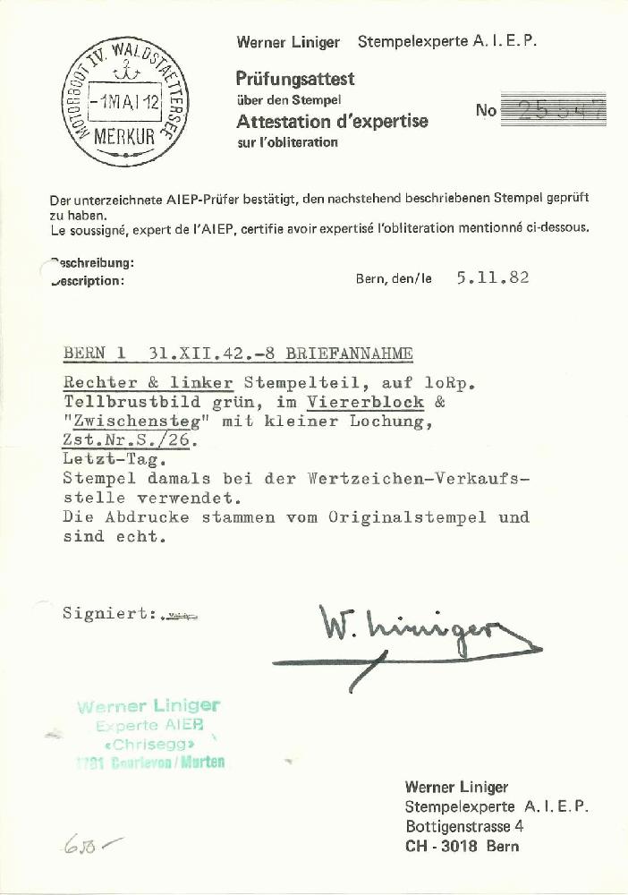 | Prüfer: | Liniger, Werner (AIEP (Association internationale des experts en philatélie)) |