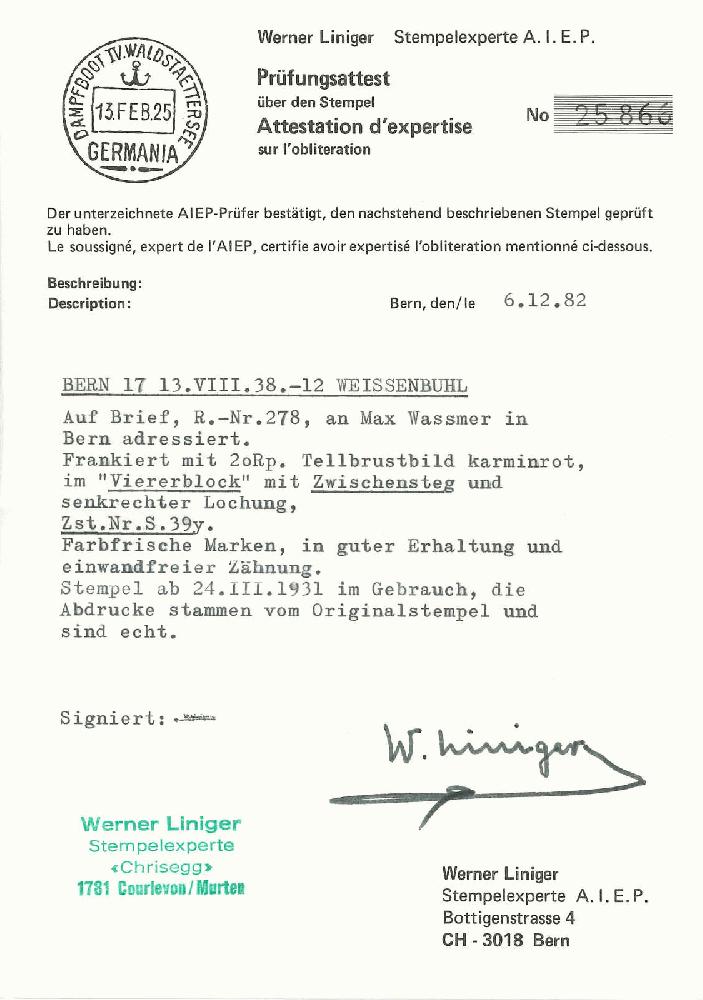 | Prüfer: | Liniger, Werner (AIEP (Association internationale des experts en philatélie)) |