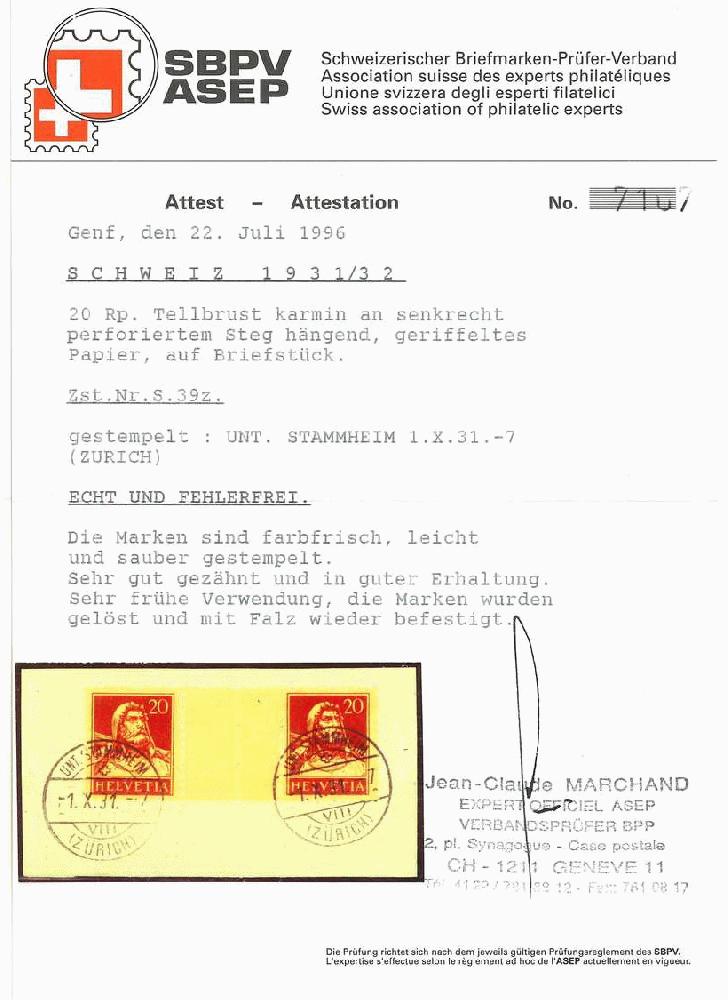 | Prüfer: | Marchand, Jean-Claude (SBPV / ASEP (Schweizerischer Briefmarken-Prüfer-Verband)) |