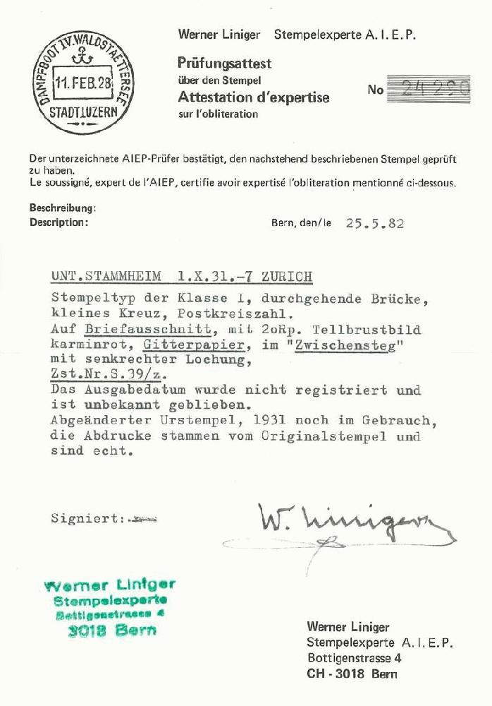 | Prüfer: | Liniger, Werner (AIEP (Association internationale des experts en philatélie)) |