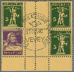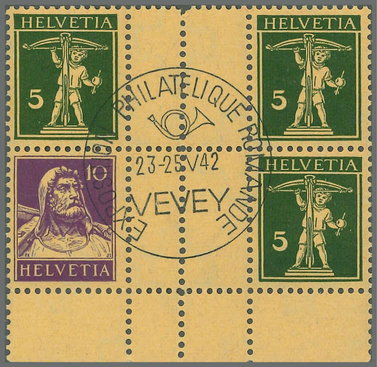 | Zusatzinformationen und Suchstichworte: | Rapp Auktion 2022 Auktionstermin: 2. - 7. Mai 2022 Los 454 Schweiz K/Z/S, Sammlungen, Lots und Posten 5 Rp. olivgrün und 10 Rp. dunkelviolett/5 Rp. olivgrün, geriffeltes Papier, Blockstück mit Bogenrand und 2 Zwischensteg-Paaren mit attraktivem Zentrum-Stempel EXPOSITION PHILATELIQUE ROMANDE VEVEY 23-25 V 42 in bester Erhaltung. Seltene Einheit, noch mit Gummi. Attest Eichele. Zuschlag 900,00 CHF |