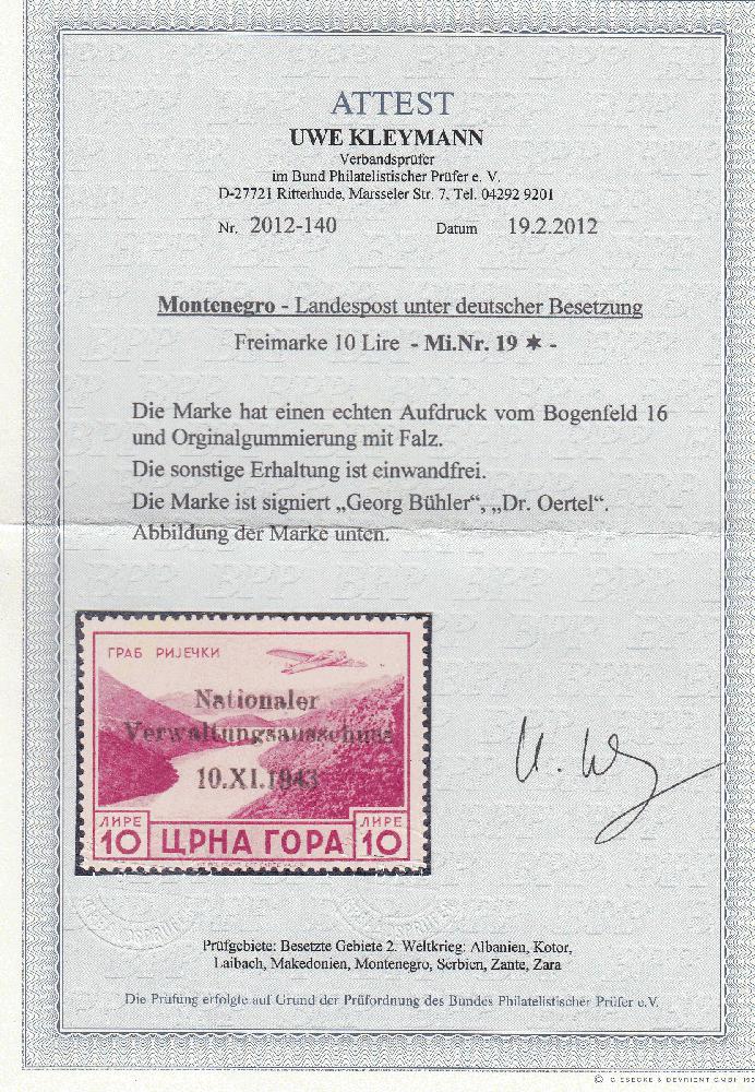 | Prüfgebiet: | Deutsche Besetzung WK 2 Montenegro |
