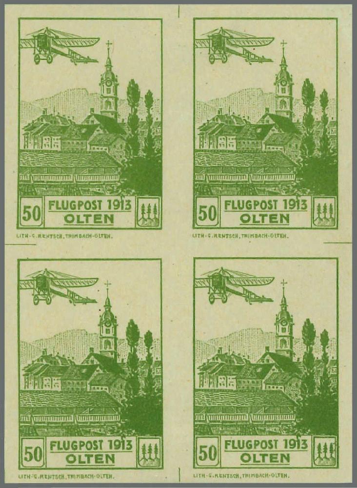 | Zusatzinformationen und Suchstichworte: | Katalognummer XII (und nicht OII wie auf dem Attest angegeben) Rapp Auktion 2022 Auktionstermin: 2. - 7. Mai 2022 Los 474 Schweiz Flugpostmarken OLTEN, Probedruck in hellgrüner Nuance, ungebrauchter Viererblock, wie verausgabt ohne Gummierung. Die Auflage betrug lediglich 24 Exemplare, vermutlich einzig noch existierender Viererblock in bester Erhaltung, aus der ehemaligen Sammlung "Bider" von W. Krisp. Die Notierung im SBK ist nicht korrekt, diese Marke existiert nur ohne Gummierung. Ausführliches Attest Eichele. PF 8.c. Zuschlag 52.000,00 CHF |