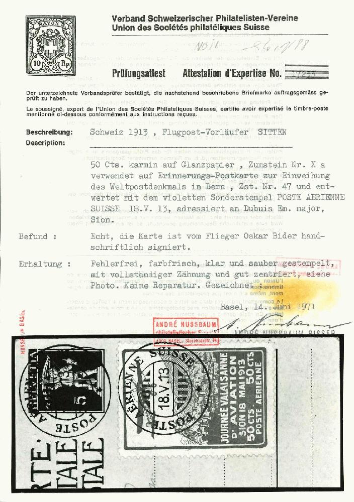 | Prüfer: | Nussbaum-Bisser, André (SBPV / ASEP (Schweizerischer Briefmarken-Prüfer-Verband)) |