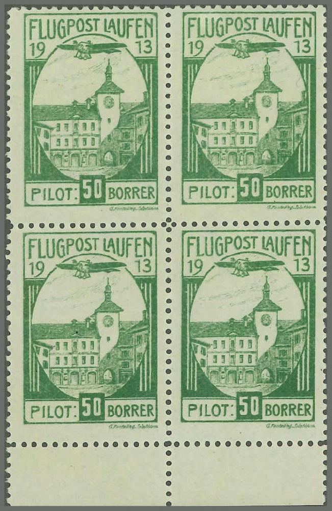 | Zusatzinformationen und Suchstichworte: | Rapp Auktion 2022 Auktionstermin: 2. - 7. Mai 2022 Los 490 Schweiz Flugpostmarken LAUFEN, postfrischer Viererblock mit unterem Bogenrand. Ein kleines Fleckchen rückseitig auf einer Marke blieb in den Attesten Hunziker und Eichele unerwähnt. PF 17 = 3'600.-. Zuschlag 2.500,00 CHF |