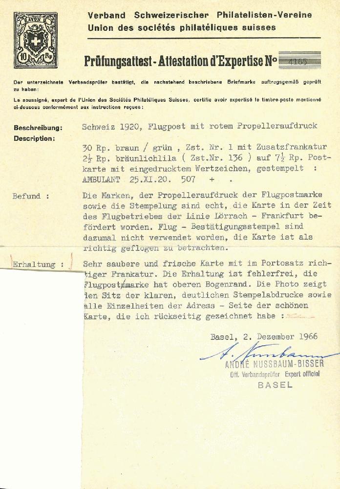| Prüfgebiet: | Schweiz - Flugpost |
